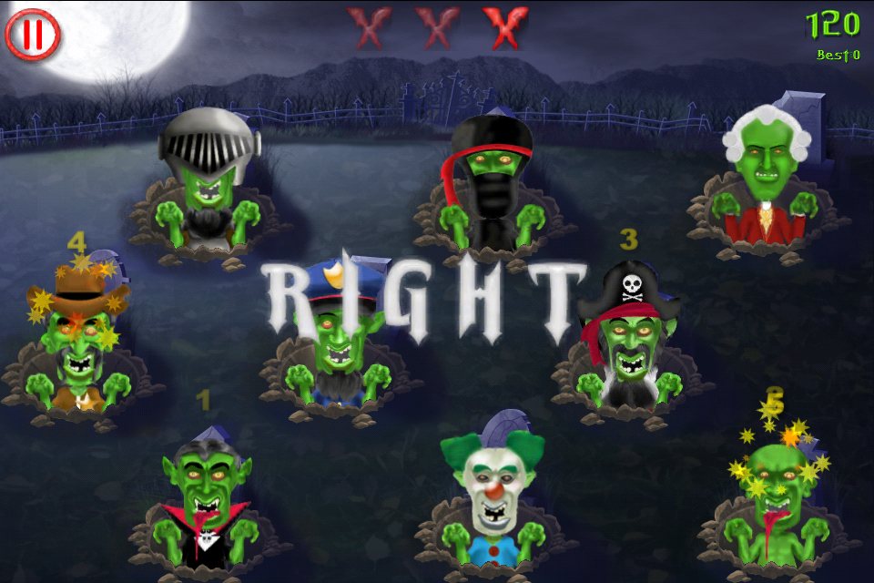 No modo “wanted”, a cada rodada um zumbi novo é o alvo. E por fim, no modo “memory”, o jogador deve utilizar sua memória para guardar uma seqüência de zumbis, que aumenta a cada rodada.